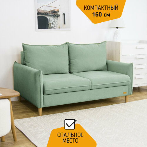 Диван-кровать KRASDIVAN Кайса, размер 160 см, со спальным местом, велюр Delta 20 мятный