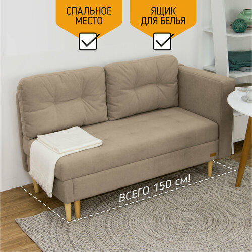 Диван-кровать KRASDIVAN Чарли, размер 150х70 см, с ящиком для белья, велюр Бахрия 4 бежевый