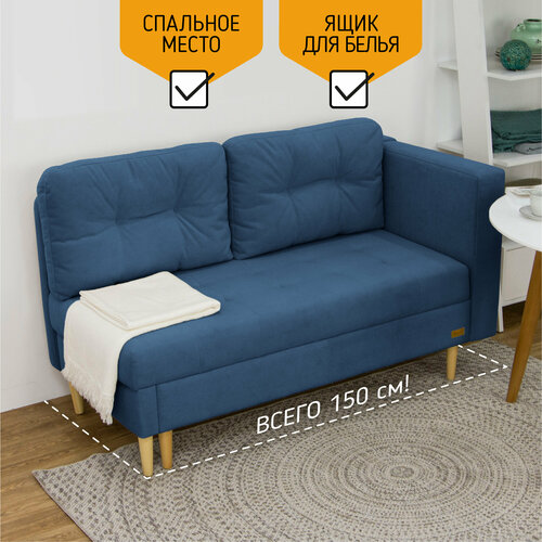 Диван-кровать KRASDIVAN Чарли, размер 150х70 см, с ящиком для белья, велюр Бахрия 14 синий