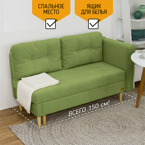 Диван-кровать KRASDIVAN Чарли, размер 150х70 см, с ящиком для белья, велюр Бонита 14 салатовый