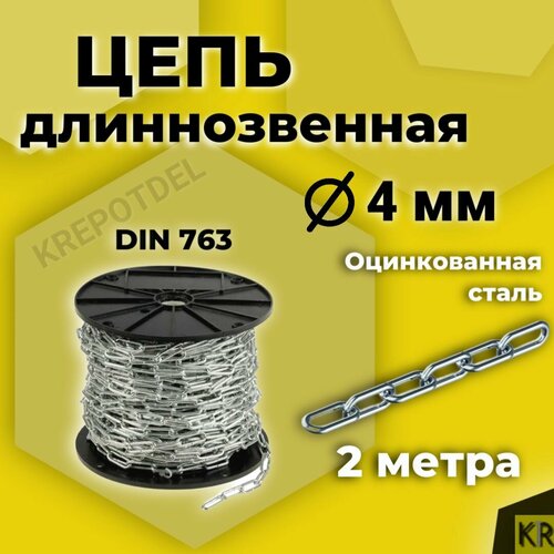 Цепь длиннозвенная 4 мм, 2 м. Цепь стальная, оцинкованная DIN 763