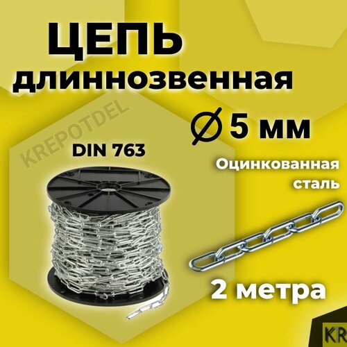 Цепь длиннозвенная 5 мм, 2 м. Цепь стальная, оцинкованная DIN 763