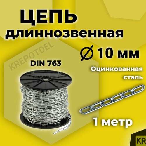 Цепь длиннозвенная 10 мм, 1 м. Цепь стальная, оцинкованная DIN 763