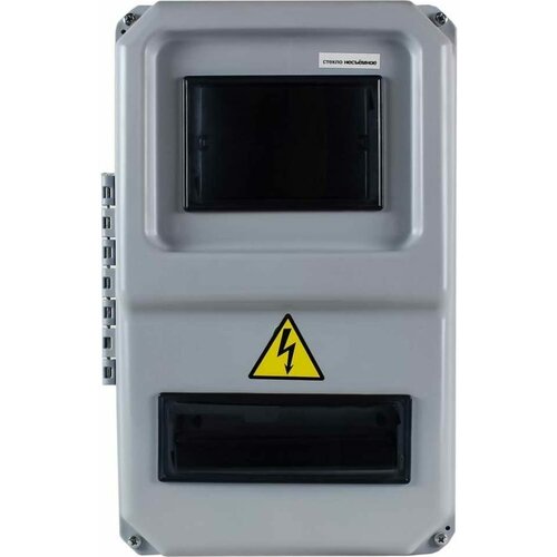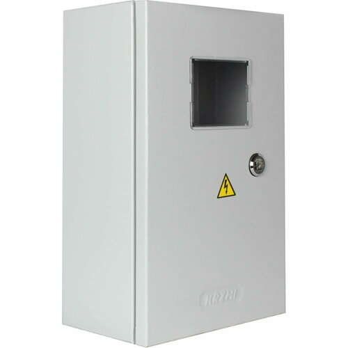 Щит учётно-распределительный KRZMI ЩУПл-1Н-12 с окном, IP54 навесной под 1Ф счетчик 12 модулей, металл 400х315х160 мм c окном с замком