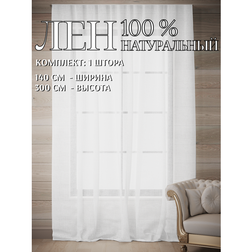 Штора легкая Лен 100% натуральный, Ш*В - 140*300см, теплый