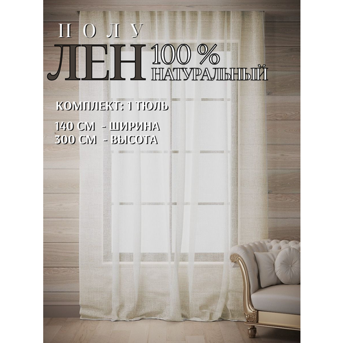 Тюль Лен Хлопок ПолуЛен 100% натуральный, Ш*В - 145*300см