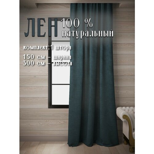 Натуральные льняные шторы, лен 100%, ширина 150, высота 300, бирюзовый