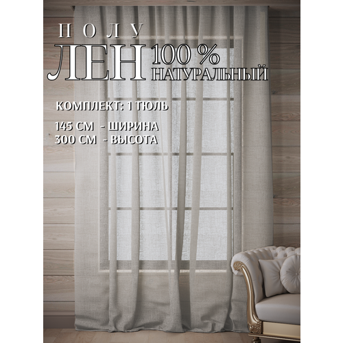 Тюль Лен Хлопок ПолуЛен 100% натуральный, Ш*В - 145*300см, серо-бежевый