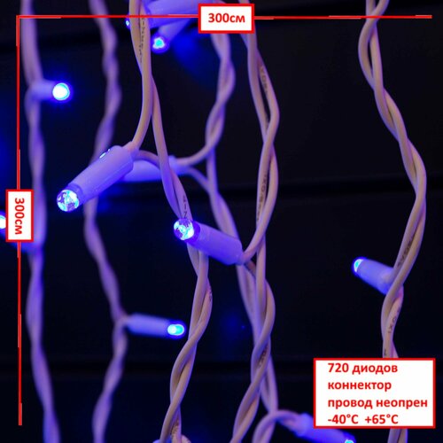 Гирлянда уличная занавес штора 720, 3*3 метра, коннектор, синий