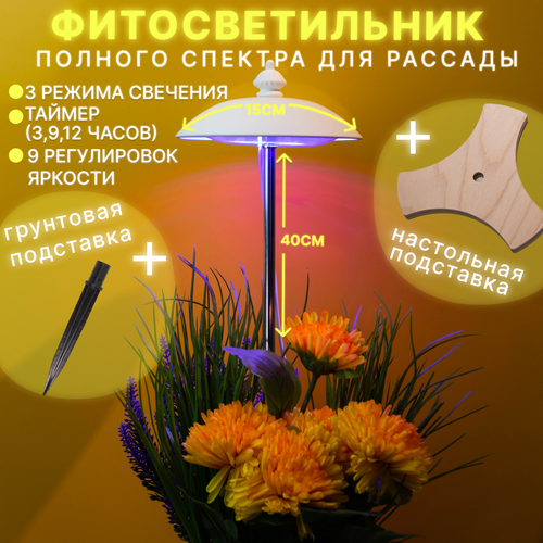 Фитосветильник полного спектра для рассады, фитолампа для растений с двумя подставками
