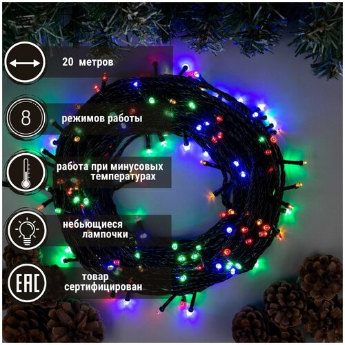 Гирлянда нить 20 метров, цветная.