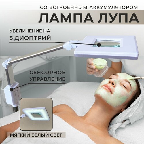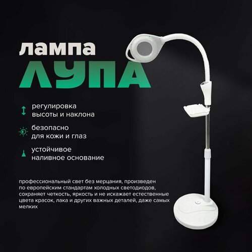 Лампа лупа на аккумуляторе kushetka174 напольная с регулировкой яркости и высоты.