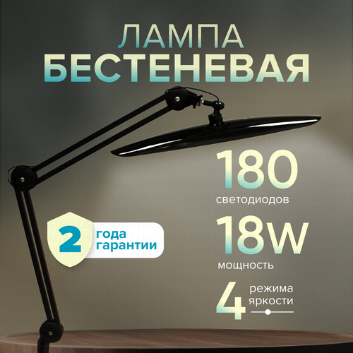 Лампа Бестеневая на струбцине Working 18w для мастеров наращивания ресниц, косметологов, маникюра, черная