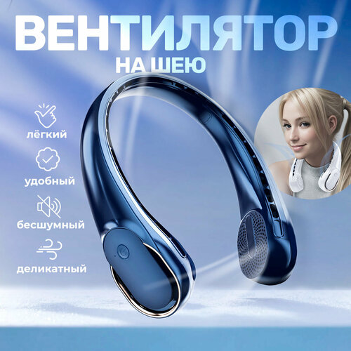 Дизайнерский портативный шейный вентилятор VO-Blue 2024 (зарядный кабель в комплекте)