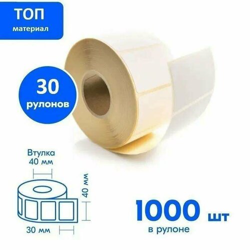 Термоэтикетка ТОП, 40 х 30 мм, 30 рулонов по 1000 этикеток (30000 шт в комплекте), втулка 40 мм