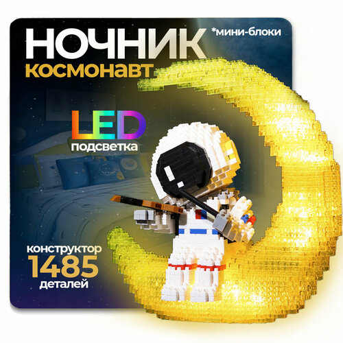 Конструктор 3D с подсветкой Космонавт с гитарой на луне (1485 деталей) астронавт