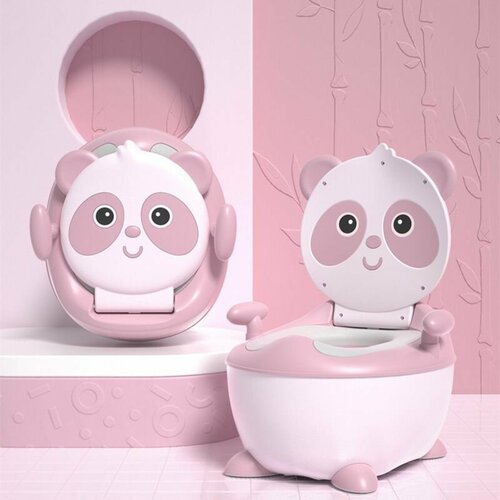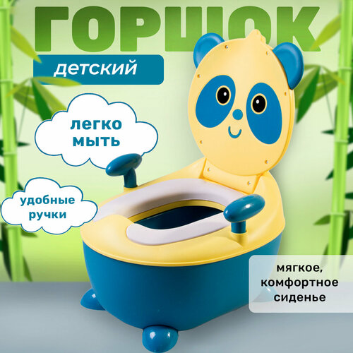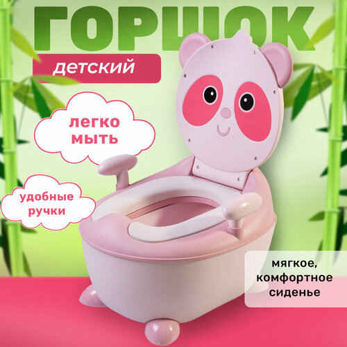 Горшок детский с мягким сиденьем, ручками и крышкой, ершиком, Панда