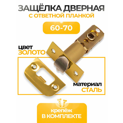 Защелка дверная межкомнатная для ручек кноб, врезной замок 60-70 мм Loid PB Золото