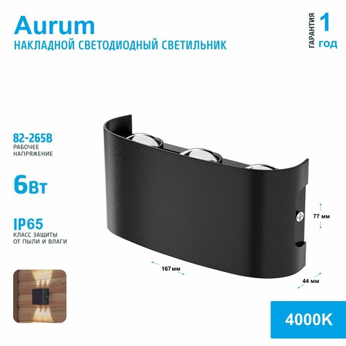 Светильник бра настенный накладной светодиодный Aurum Loro 200х100 мм Gold 10W золотой/черный матовый 3000K (для внутренней и наружной установки)