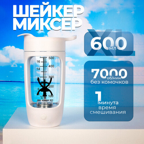 Шейкер XL электрический для спортивного питания, шейкер для протеина с миксером (600 мл)