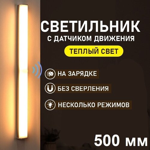 Светильник ночник беспроводной магнитный с датчиком движения Aurum Led 500 мм (теплый свет) переносной (кабель зарядки USB в комплекте)