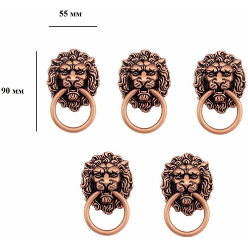 Ручка мебельная для кухни, шкафа, гардероба Loid 139 Лев L AC 90х55мм Античная медь, 5 шт
