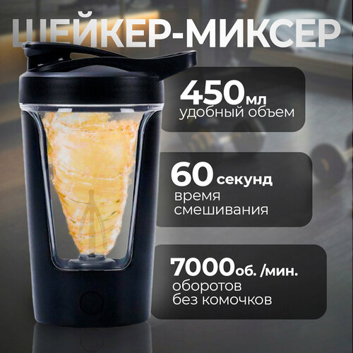Шейкер электрический для спортивного питания, шейкер для протеина (объем 450мл) с миксером