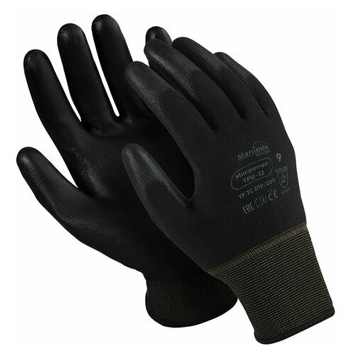 Перчатки защитные нейлоновые Manipula "Микропол", полиуретановое покрытие (облив), размер 9 (L), черные, 12 пар (TPU-12)
