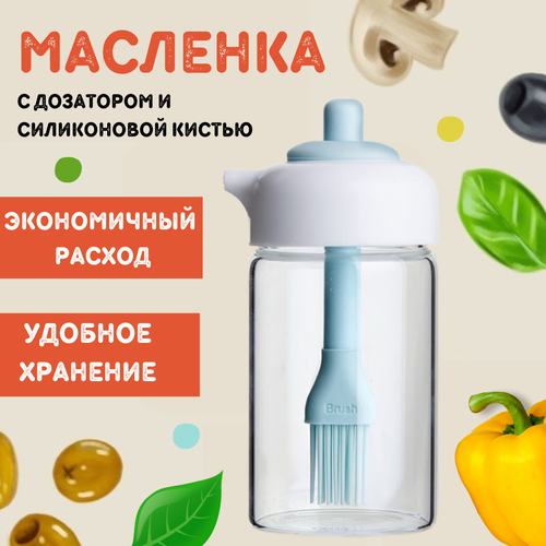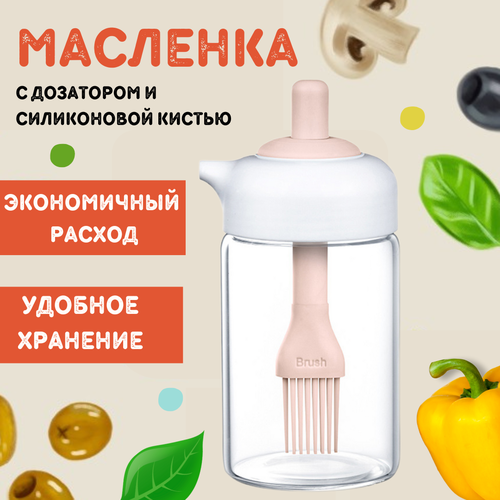 Масленка стеклянная с дозатором и силиконовой кистью, объем 280 мл