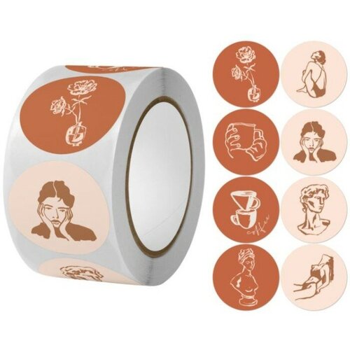 Наклейка бумага "Искусство" d=2,5 см 500 шт в рулоне 3х6,5х6,5 см