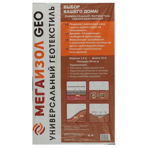 Геотекстиль Мегаизол Geo универсальный геотекстиль (80кв. м.)