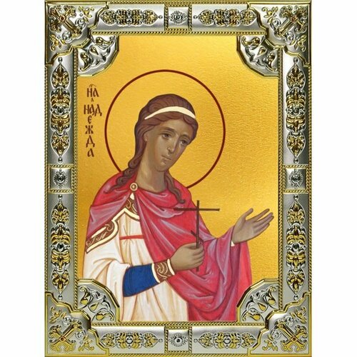 Икона Надежда мученица 14x18 в серебряном окладе, арт вк-1046