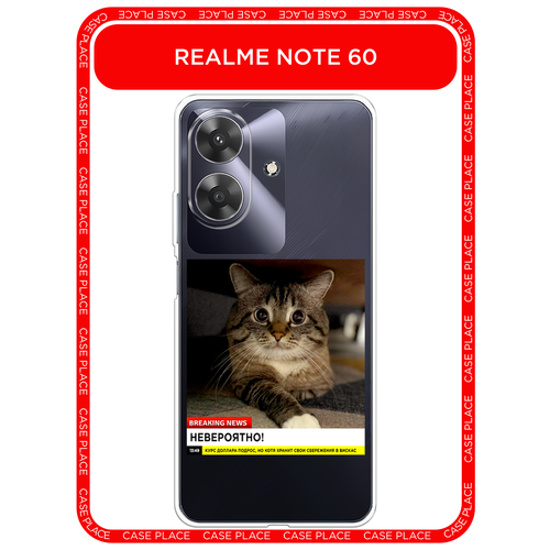 Чехол на Realme Note 60/60X / Реалми Нот 60/60X с принтом Невероятный кот, прозрачный