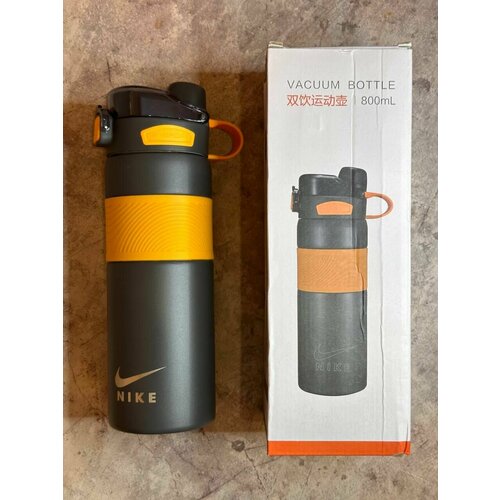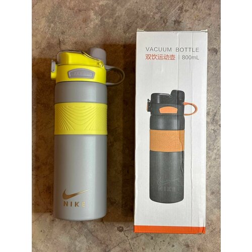 Спортивная термокружка Nike 800мл/герметичная с трубочкой/нержавеющая сталь в нежном силиконе/ цвет Серый