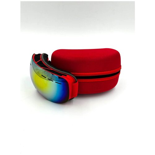 Горнолыжные очки, двухслойные, антизапотевающие синие линзы красная рамка / Горнолыжная маска / Очки для сноуборда