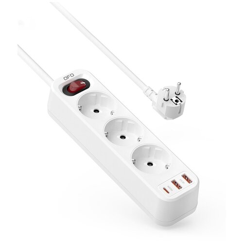 Удлинитель бытовой электрический OFOPRO, сетевой фильтр, 3 гнезда-розетки, 2 USB, 1 USB TY WP09-F3B-PD