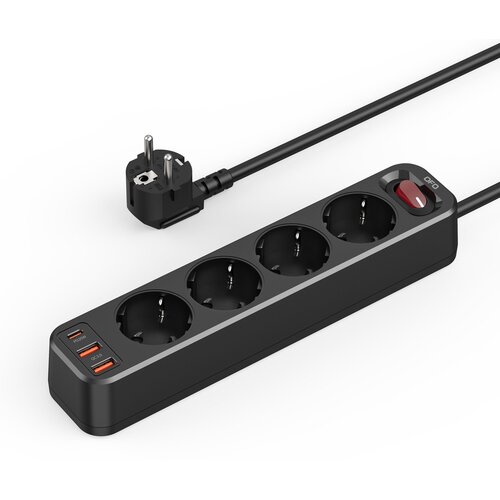 Удлинитель бытовой электрический OFOPRO, сетевой фильтр, 4 гнезда-розетки, 2 USB, 1 USB TY WP09-F4B-PD