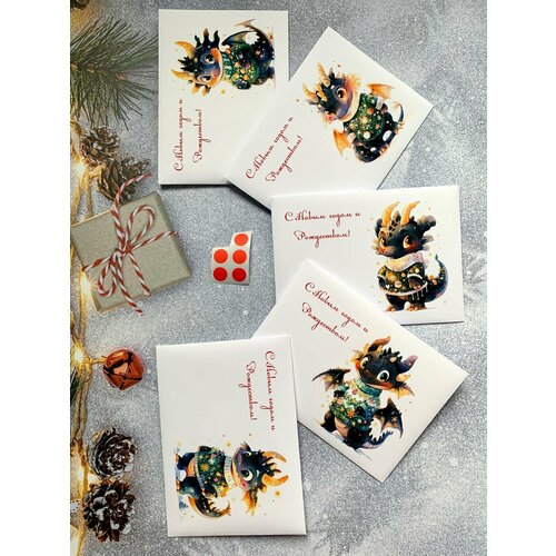 Конверты подарочные "Драконы фиолетовые" 5шт