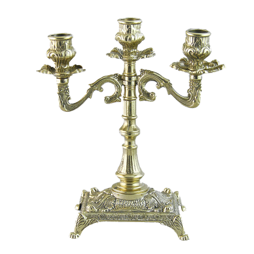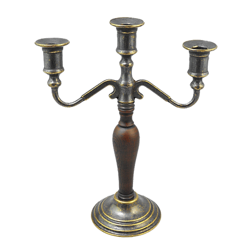 Канделябр с деревянной вставкой на основании, подсвечник на 3 свечи, антик