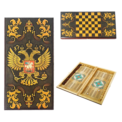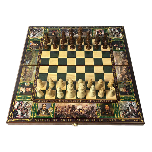 Подарочный набор игр шахматы, нарды, шашки с доской Бородино