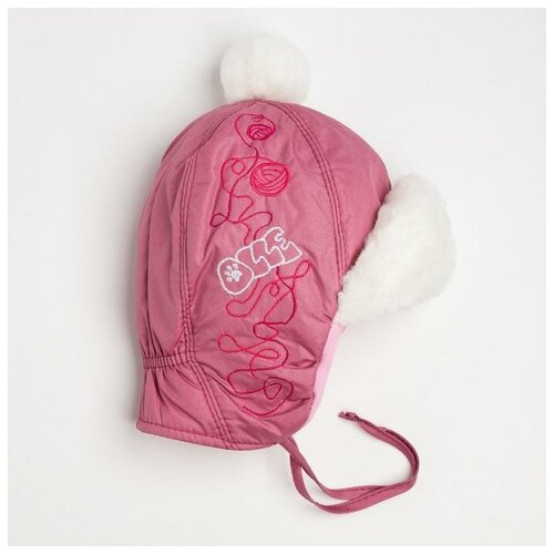 Шапка для девочки "Бом с вышивкой" , цвет брусника/светло-розовый, размер 48 100046028881