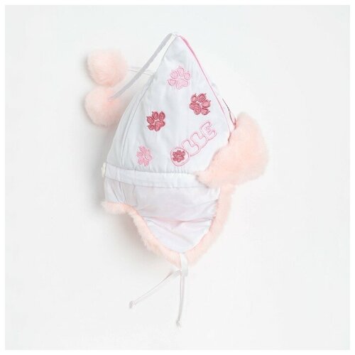 Шапка для девочки "Бом с вышивкой", цвет белый/светло-розовый, размер 48 100046028879