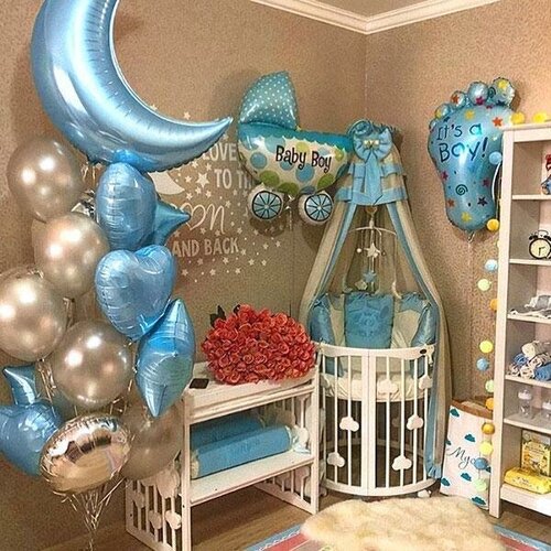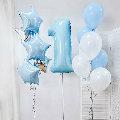 Набор воздушных из надутых гелием шаров для мальчика "Один годик" 12 шаров
