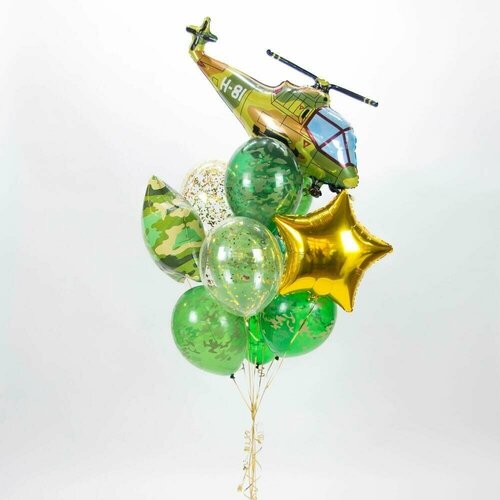 Букет из надутых гелием шаров "Вертолёт" 12 шаров
