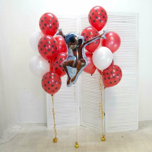 Композиция из надутых гелием шаров "Леди Баг" 17 шаров