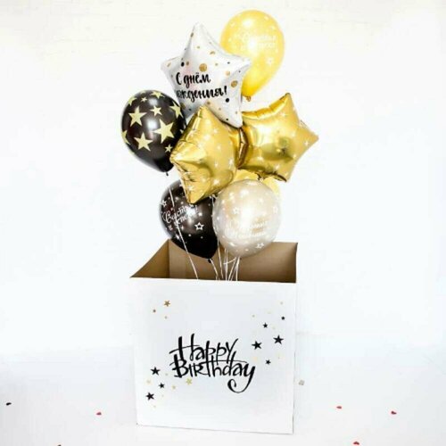 Коробка с шарами надутыми гелием "С днём рождения" 8 шаров