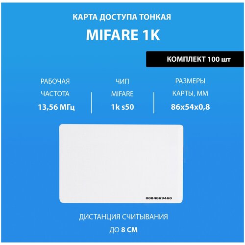 Карта доступа тонкая Mifare 1k (100шт). Карта с уникальным кодом (идентификатор). Частота 13,56 МГц ISO RFID