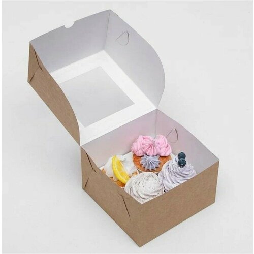 Упаковка для капкейков с окном на 4 шт, крафт 16 х 16 х 10 см (в упаковке 5 шт)