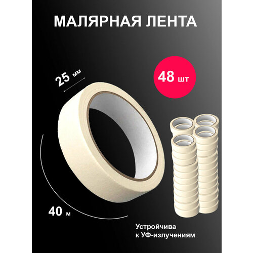 Малярный скотч 25х40 мм 48 шт клейкая лента для ремонта