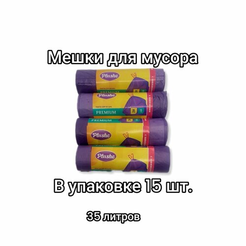 Мешки для мусора 35 литров 15 штук с завязками 4 упаковки